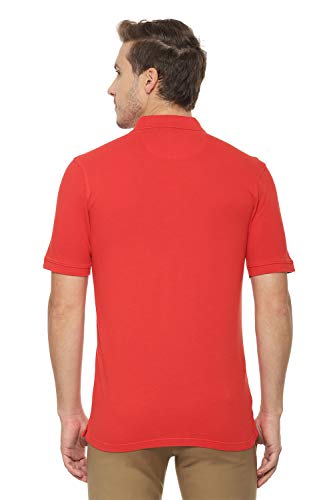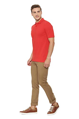Allen Solly Jeans co விலிருந்து இந்த சிவப்பு சாலிட் போலோ கழுத்து டி-ஷர்ட்டில் ஏஸ் வார இறுதி டிரஸ்ஸிங்.