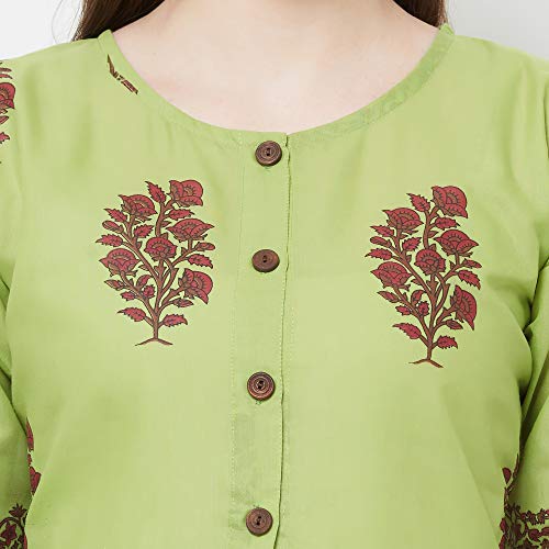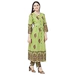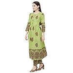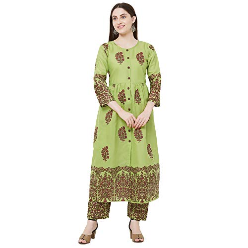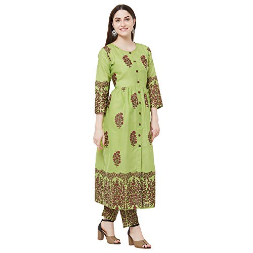 GoSriKi women’s Green color cotton block printed kurta with palazzo pant set(lagan-green-l).