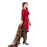 Beautiful suit look pretty like never before. Wearing this Red color suit which made from crepe with black coloured crepe Patiala bottom and multicolour coloured chiffon dupatta. Suit has also decorative work like printed. This beautiful suit features a classy printed work all over, which makes it a smart pick for all occasions. You can wear this suit in different styles. You can wear it occasionally or casually.